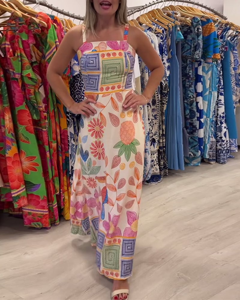 Casual Suspender Print Dress